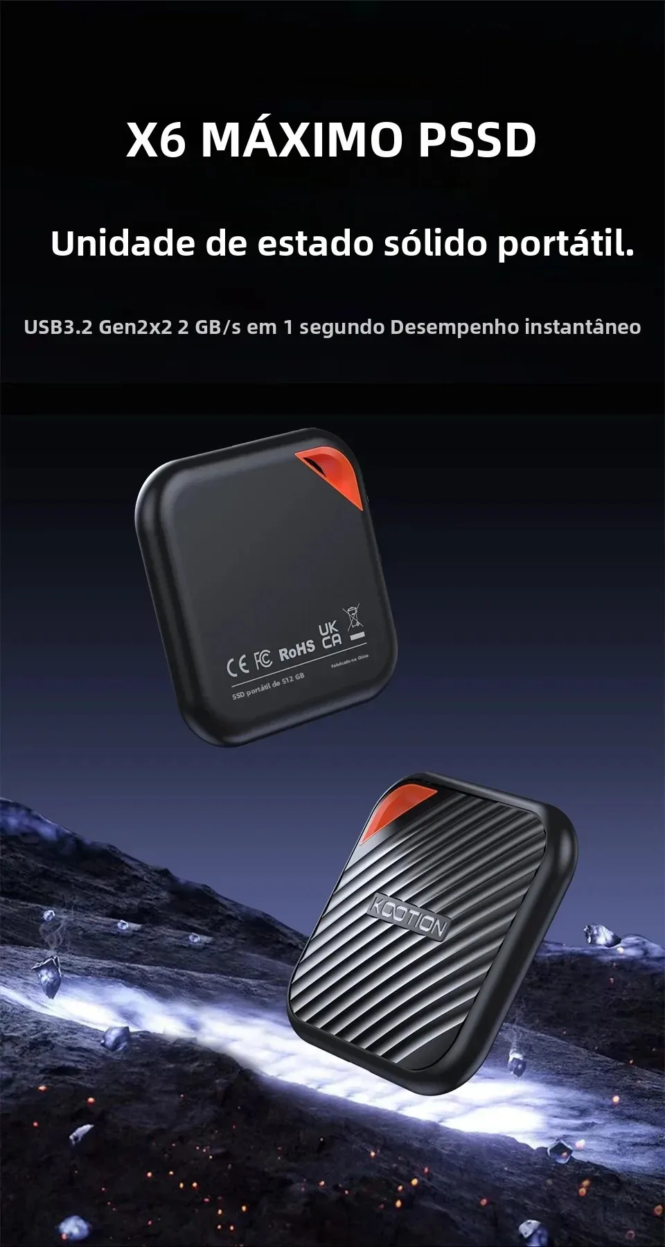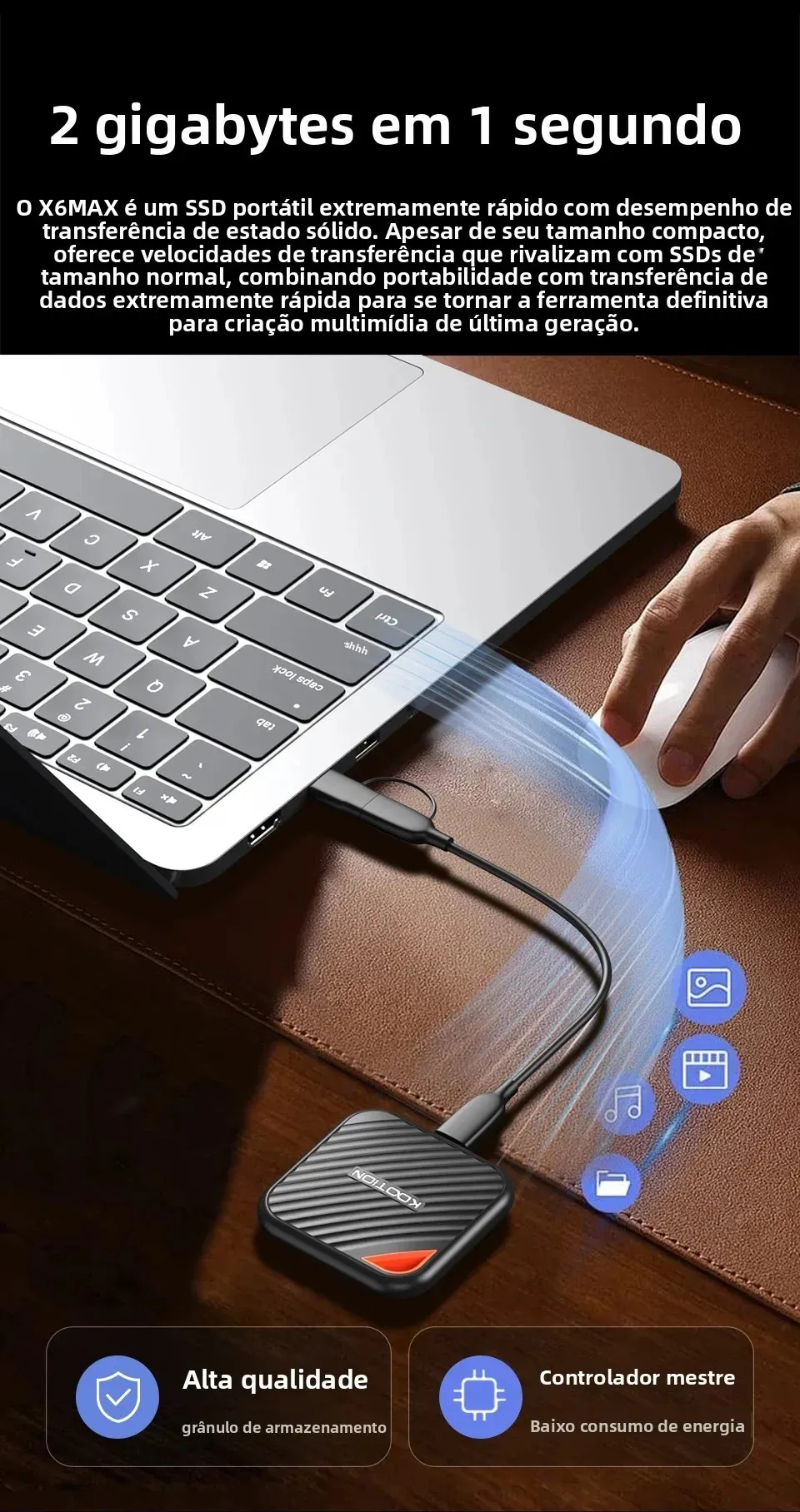 Perfeito para quem está sempre em movimento, seja para viagens, reuniões ou estudos, o KOOTION X6Max oferece uma experiência de armazenamento sem complicações e com total mobilidade. Diga adeus aos HDs externos grandes e pesados – este é o futuro da portabilidade digital.