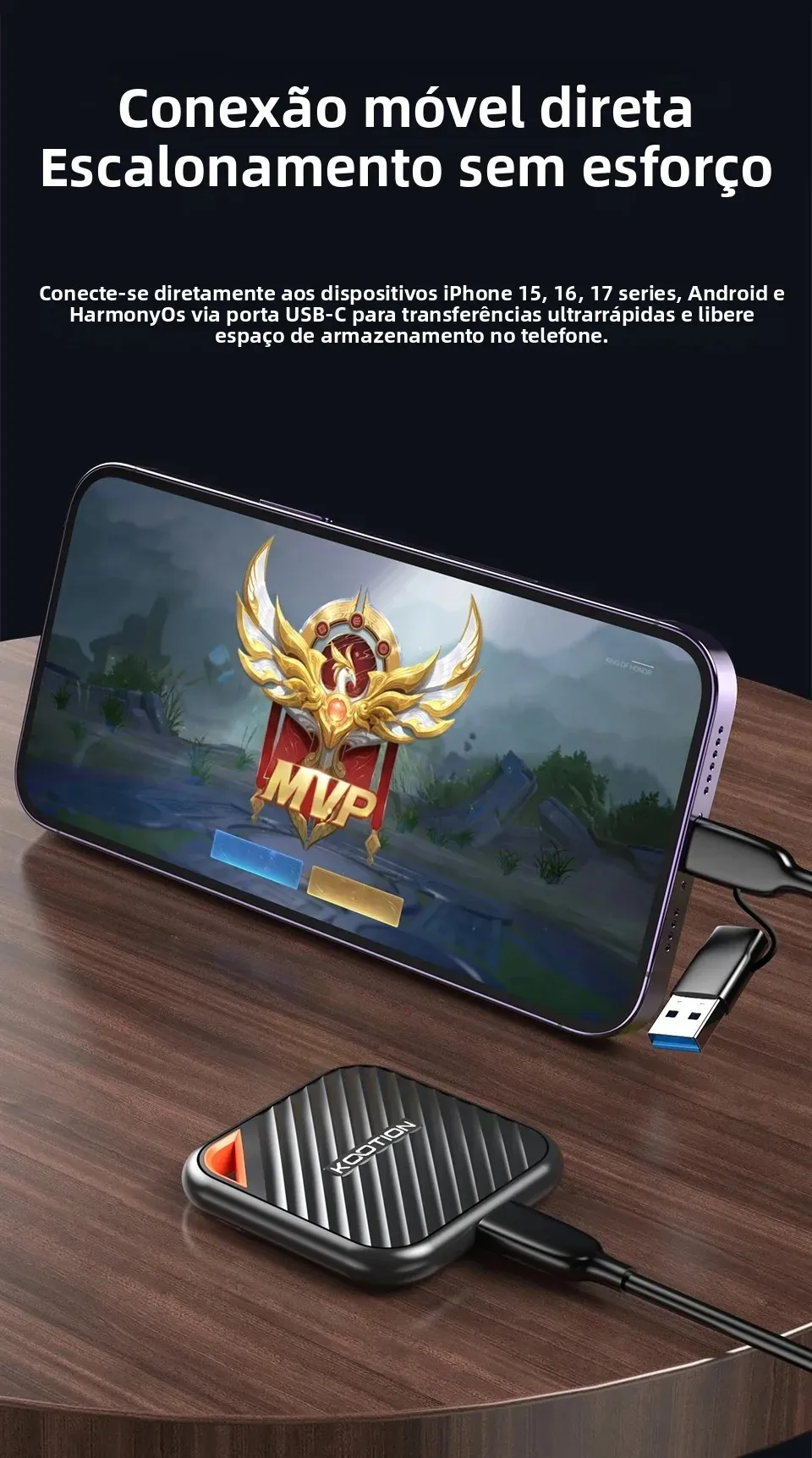 Não importa se você está armazenando suas séries favoritas, documentos importantes, jogos ou arquivos de trabalho, o KOOTION X6Max é capaz de garantir a capacidade e velocidade que você precisa, adaptando-se perfeitamente ao seu estilo de vida digital.